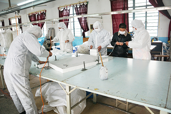 美尔姿服饰公司拥有缝纫设备500多台(套),年生产和销售“美尔姿”牌羽绒服等羽绒制品及衬衫、休闲服、内衣、童装等系列服装超百万件。“拥有稳定的产业基础,疫情之下完全可以转型。”田会玲介绍,在疫情来临防控物资短缺的情况下,美尔姿当即响应农场党委号召,一方面努力与县商务、工商部门对接,申请疫情防控紧缺物资生产批号;另一方面公司明确要求分区分片强化疫情防控责任,了解员工身体健康状况。