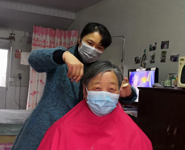 因街道上理发店全部关闭,许多春节期间想理发的老人甚感不便。淮海城西居委会志愿者沈月萍看到这种情况后,利用自己10年以来帮自家父母理发的便利条件,无偿帮助前后幢10多名老年人义务理发,精湛的理发技艺,赢得了城西居民们的普遍赞誉!