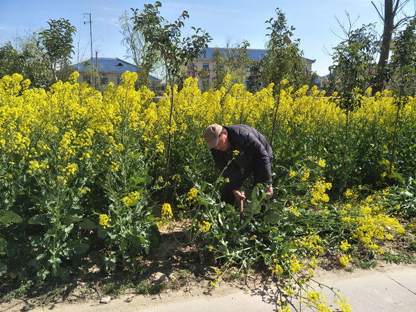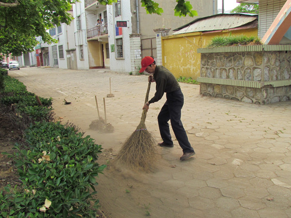 吴兆云是城西居委会退休居委会主任,也是一名拥有30多年党龄的老党员,他一边铲除路边杂草,一边介绍说:“我本来就在居委会工作,看着咱们农场环境一天天的变好,社区下达人居环境整治任务后,我想着反正在家也没事,就主动加入环境整治队伍,打扫打扫卫生,发发宣传单什么的。”只见他打扫卫生还十分注重细节,铲除水泥路旁的杂草时,一边铲杂草,一边平整土地。