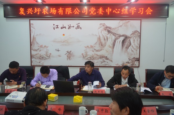 5月15日上午,复兴圩农场有限公司召开2020年第五次党委中心组学习会,深入学习党的一系列理论政策,进一步提高党员干部的政治素养和理论水平,中心组全体成员参加了会议,复兴圩领导班子赵军场、杨生力、苏学军、周国才、朱涛出席会议,会议由党委书记、董事长、总经理赵军场主持。