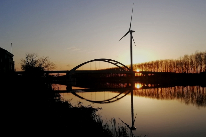 图为黄沙港大桥夕照