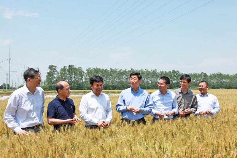 胡兆辉一行先后深入到栎树项目基地、中山杉苗木培育基地、小麦高产田块、国有种植高效农业新品西瓜大棚、粮食烘干线现场进行了查看。胡总听取了弶港当前农业生产、农场社会化改革、党建、社区及疫情防控等工作情况汇报,详细了解三夏各项准备工作、农产品质量管理体系建设、农业服务公司运行、农场改革推进、经济转型升级等方面的工作情况。
