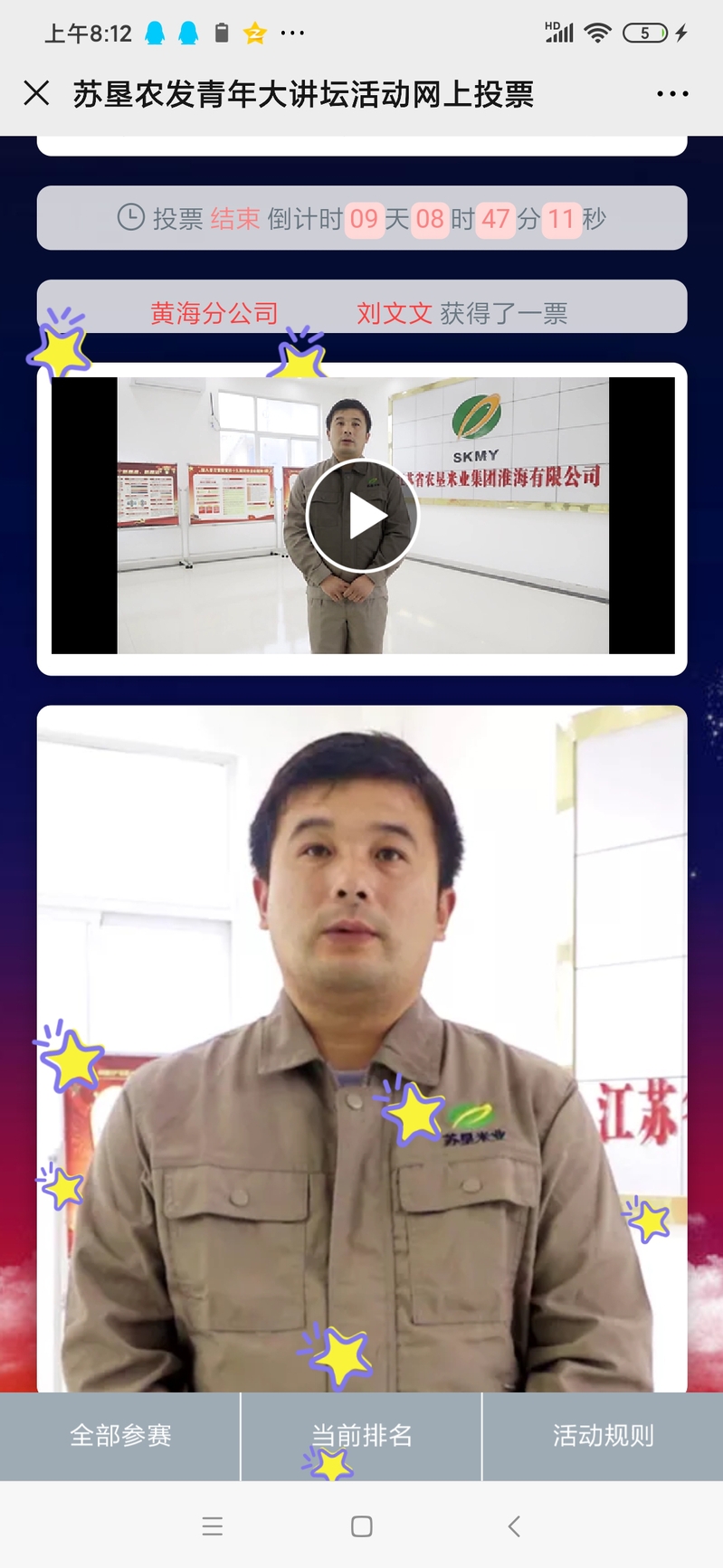 在昨天开展的苏垦农发青年大讲坛活动网上投票开启以来,在所有参赛的32名选手当中,来自淮海分公司的任超荣、刘义飞和苏垦米业淮海公司的黄旻榜上有名,截止今天上午8点,黄旻以890分的成绩排名第10名,而任超荣和刘义飞排名均在半数以上。目前网上投票活动踊跃,希望来自淮海的选手都能获得好成绩。图为黄旻网络宣传海报。