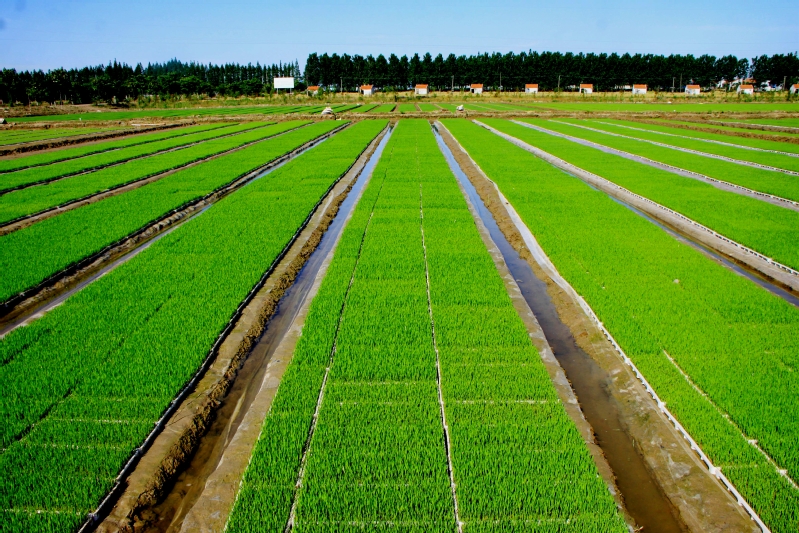 新洋分公司是江苏农垦首家全面实行机械插秧的单位,10多年来他们不断总结机械落谷和育秧的的经验,科学的管好秧苗移到秧池后的水肥管理和病虫害的防治,确保育大苗、育壮苗。各大队所育的秧苗一片葱绿,只待大麦收割后即可耕田整田后插秧。