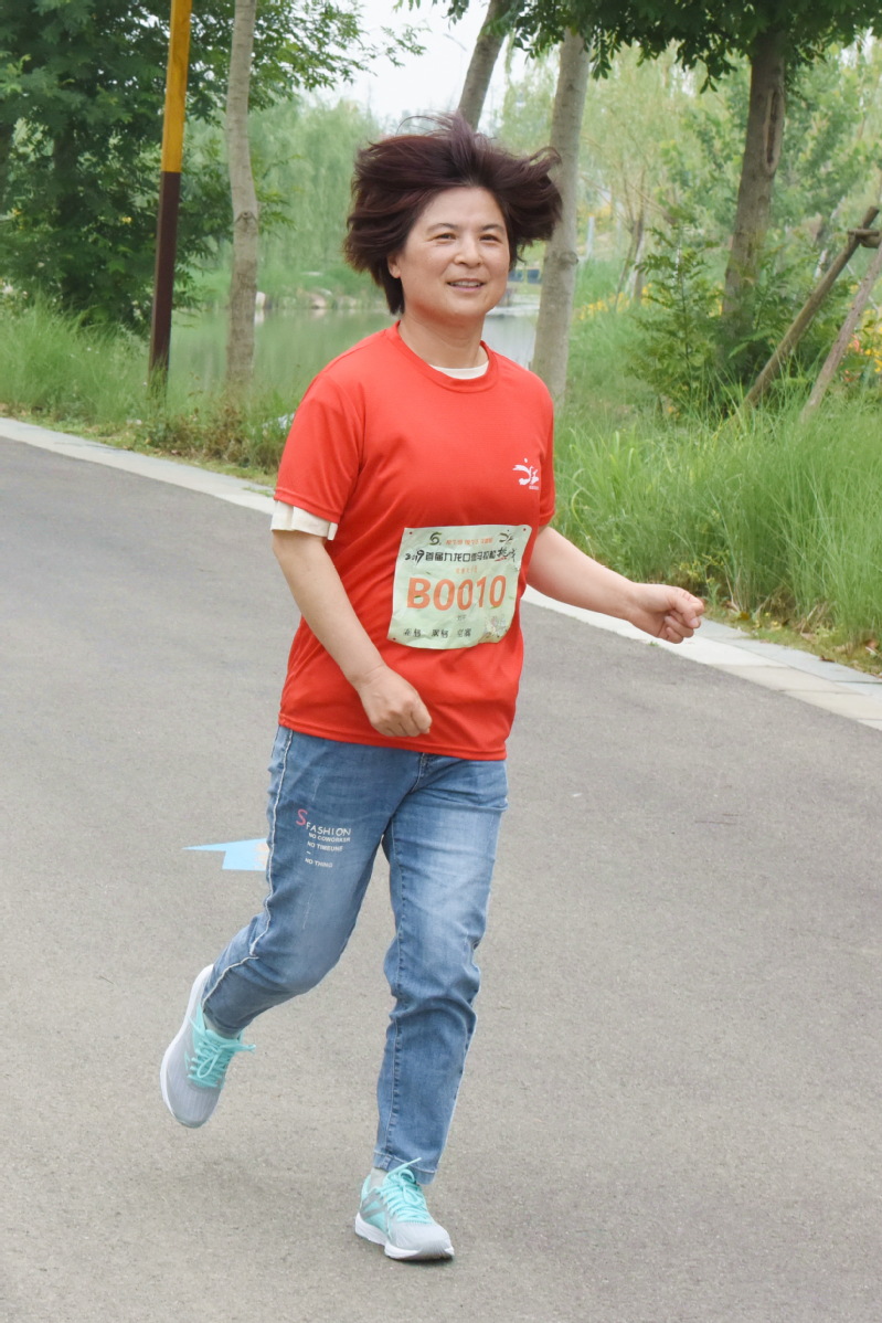 图为刘平在工作时的镜头和她参加盐城马拉松长跑比赛时的画面。
