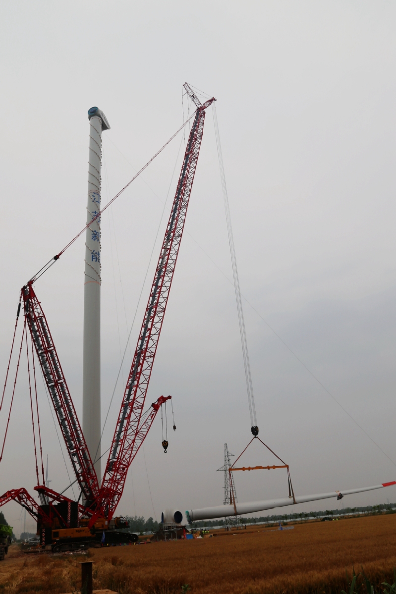 图为风机吊装现场。