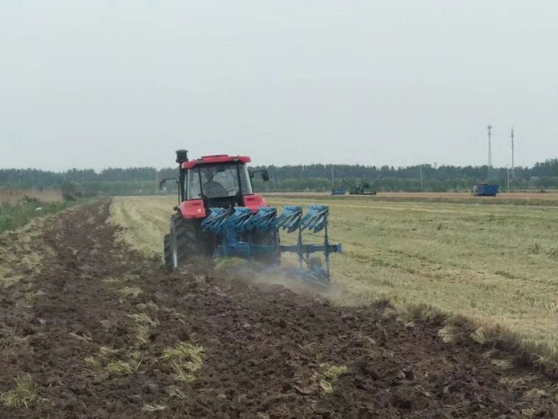 淮海农场有限公司是多年来从事麦稻连作生产的农场,多年来由于秸秆还田可以有效地提升作物的产量,增强土壤的疏松度,增产效应明显,加上农场农业机械化力量的强大,不仅收割机械的选型有利于切碎秸秆,而且后续的耕耙田旋田机械可以轻松地将秸秆均匀地散布在土壤中,大大化解了过去秸杆量大混不匀、影响当季作业质量带来的后续作物产量提升难题,从而在职工居民中形成了共识和理论认同,从而从思想源头上促进了禁烧工作。图为收割机在切碎作业和大农机在耕地时的镜头。
