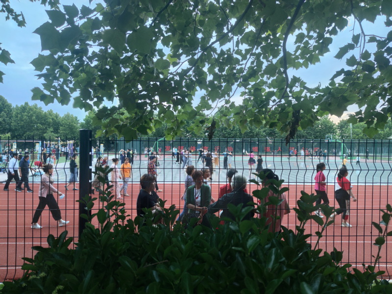 为了保证职工居民或来到这里参与健身的周边农村群众安心活动,农场在广场入口处配套建设了停车场,每天让农场社区的联防队员前来维持秩序,让大家有一个有序的健身环境和和谐的运动氛围。并且还对篮球、门球、交谊舞等大型活动,还运用协会组织的形式加以规范管理和推进,让大家在有序管理的模式下进行各类体育健身运动。农场社区的管理人员经常对广场内的草坪进行修剪,在配置五个环保垃圾箱的同时,对垃圾每天三次进行巡视捡拾,经常性地对所有健身器械进行检查、维护,保证健身器械的安全使用。广场舞场和篮球场相邻建设,也是每天晚上活动人群最多的地方。农场公司领导针对打篮球的人经常会因为篮球飞出场外,砸到周边的职工居民身上造成伤害的实际,对危险的篮球场配置了封闭式的网箱设计,既保证了打篮球人的顾虑,又保证了周边跳舞或是路过人的安全。也正是农场社区对职工休闲体育运动广场的倾心管理,使得来职工休闲体育运动广场来打球散步或是健身跳交谊舞的职工群众越来越多,也成为了淮海打造健康体育文化中的一道唯美风景。
