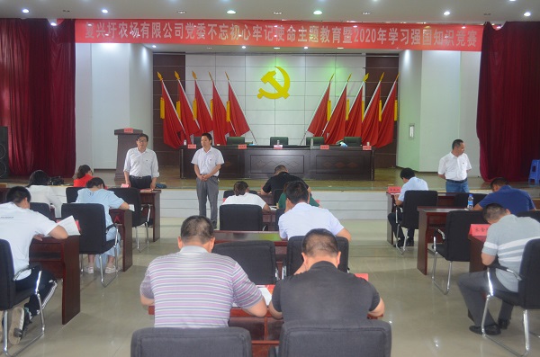 为了庆祝中国共产党成立99周年,巩固“不忘初心、牢记使命”主题教育成果,检验今年以来全场党员干部职工学习强国平台学习效果。6月29日上午,复兴圩农场有限公司党委举行了“不忘初心、牢记使命”主题教育暨2020年度学习强国知识竞赛,全场在职党员、积极分子、管理人员参加了考试。