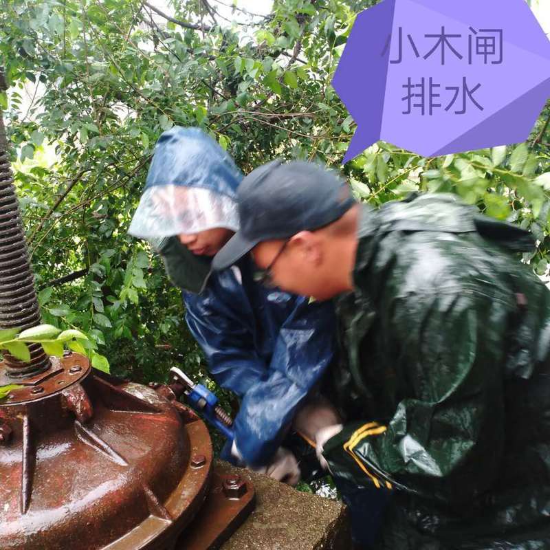 农水中心主任何成就带领农机总站一行7人临危受命冒雨前往小木闸。小木闸是农场刚建成时建立的河闸,肩负新洋农场的抗洪排涝任务几十年,在农场新建成电动河闸后处于退休状态,原本的电机已经拆除,升降闸门的螺杆也已生锈。如果不是这次雨来的太猛,小木闸本可以如一个退休的老人一样静静地看着新洋蓬勃发展。