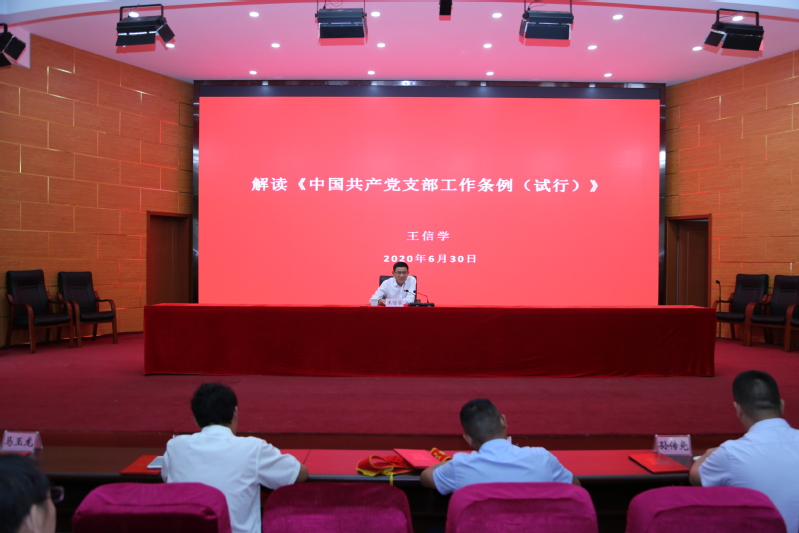 七一临近,为纪念中国共产党的99岁生日,6月30日上午,岗埠农场公司党委书记王信学在职工之家大会堂,以解读《中国共产党支部工作条例(试行)》为主题,为广大党员干部上了一堂生动的主题党课。