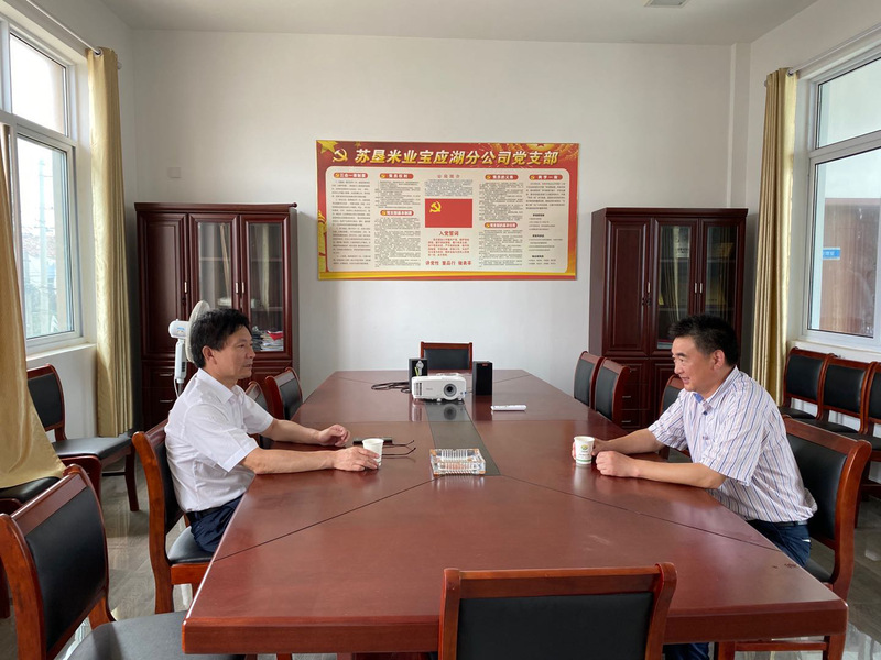 7月7日上午,宝应湖农场有限公司党委书记李乾清来到苏垦米业宝应湖分公司党支部指导党建工作,深入了解党建阵地建设情况,党支部书记倪行华全程陪同。