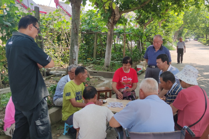 据悉,生活在淮海的退休职工就有近3000人,他们在退休前在各个岗位上打拼,为农场的经济社会建设作出了重大的贡献。如今他们退休了,也该他们到了享受的年纪了,于是这些老邻居老朋友们,在阳光下的树荫中,或独处着看书报、浏览手机上的新闻趣事;或夫妻俩及儿女们谈论着家事;或三五一群、四五一堆聚在一起聊天、打牌、下棋……怡然自得心情舒畅地享受着夏日清凉的荫凉,一起享受着午前午后的休闲时光。有的老年人虽然不会玩,但他们喜欢凑热闹,在交谈中度过了享受着的一天。