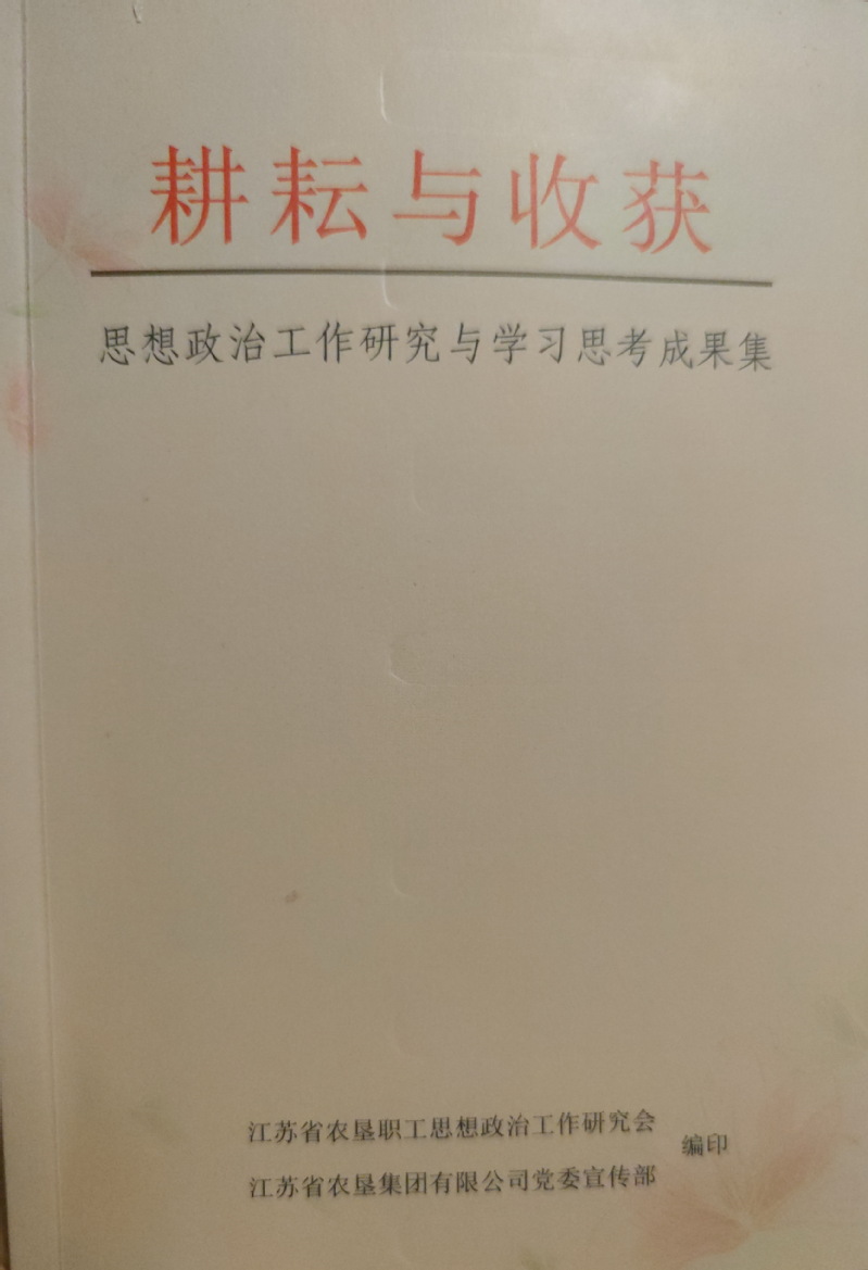 近日在江苏省农垦职工思想政治工作研究会第八次会员大会暨2020年度政研会年会发行的,由江苏省农垦职工思想政治工作研究会、江苏省农垦集团有限公司党委宣传部编印了《耕耘与收获》思想政治工作研究与学习思考成果集上,共选录了获得一二等奖的24篇基层政研分会报送上来的作品,其中淮海农场公司单祥忠的《让军垦精神成为和谐发展的动力源泉》、孙国祥采写的《党员干部要站在高质量发展的最前沿》、陆军的《建好新时代文明实践中心之我见》等三篇论文入选,是入选《耕耘与收获》书籍中文章篇幅最多的农场之一,占入选文章录用数量的12.5%,