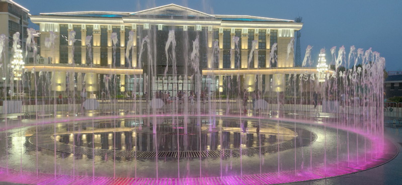 在淮海农场文化广场中心区域的喷泉位上,每天傍晚时分,这里的音乐喷泉总是给农场的夜色增添了变幻着的迷人风景,能变换许多种造型的大型音乐喷泉,时而一柱冲天、时而万马奔腾、时而此起彼伏、时而柔性十足,并且音乐喷泉在周边楼宇的灯光和职工居民舞蹈动作的映衬下更加唯美、更有动感、也更有了灵气。每到夜晚,喷泉在音乐声中翩翩起舞,色彩斑斓。受此喷泉吸引,农场职工居民喜欢在音乐喷泉旁载歌载舞,喜欢围着音乐喷泉拍照留念。而这里更成为了孩子们追逐的天堂,通过近距离地欣赏音乐喷泉的美景。不同的需求、不同的美景、共同的快乐,让大家在音乐喷泉的风姿中,度过一个又一个快乐的夜晚。
