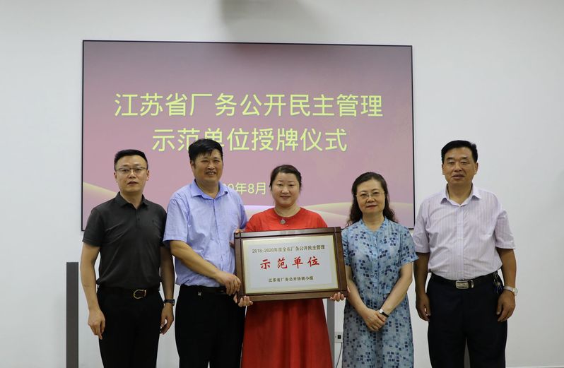近日,连云港市总工会来东辛农场有限公司举行江苏省厂务公开民主管理示范单位授牌仪式。市总工会副主席秦云到场祝贺,并颁发奖牌。东辛农场公司副总经理、工会主席王绪国及相关单位负责人出席授牌仪式。