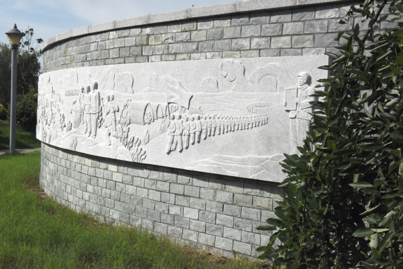 在这个用文化设施和树木花草而营造出的淮海公园景区当中,那些绽放出军垦传统文化、廉政及道教文化等设施,让整个公园充满了浓浓的悠扬文化,并让你在驻足欣赏中,品味着淮海人创立的军垦精神和廉政氛围。图为淮海公园中的设施文化。