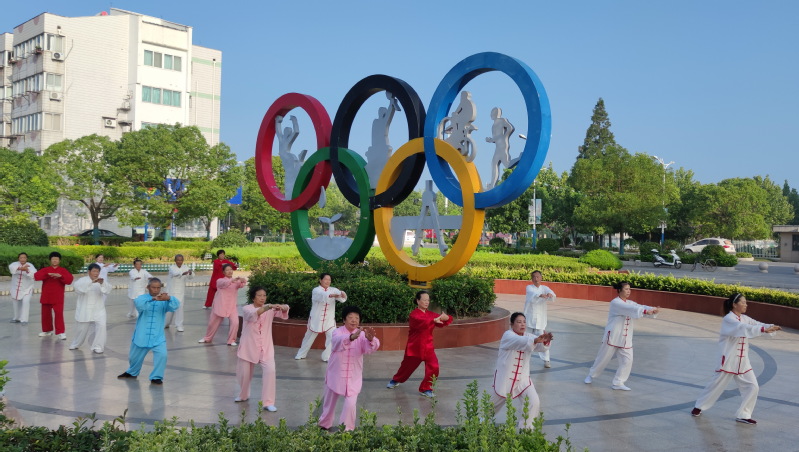 太极拳文化博大精深,在中国有着悠久的历史,也是祖国文化不可多得的瑰宝。同样在淮海农场那些平均年龄达70多岁的老年人,他们每天把太极拳轻柔舒缓、强身健体的拳法演绎得淋漓尽致,特别是那些太极老人们那种娴静优雅,自然从容的境界,展示了太极拳的美,特别是他们在文化广场五环雕塑下展示那行云流水式的太极拳,那优美的韵味,洒脱的肢体语言,美得让人心醉。
