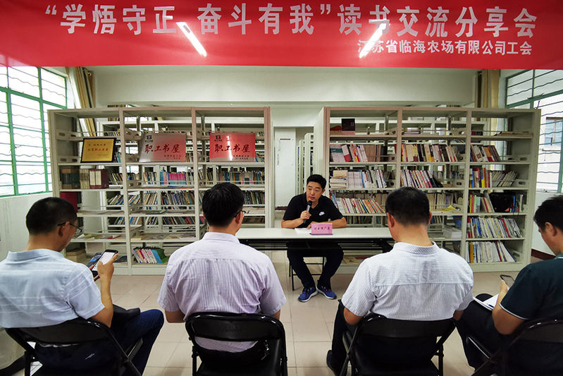 为进一步动员职工积极开展丰富多彩的阅读活动,推动全场上下形成读好书、好读书、读书好的良好氛围,8月31日下午,临海农场公司工会开展了“学悟守正 奋斗有我”读书交流分享会。此次活动在省级职工书屋-临海农场职工书屋内举办,来自全场各单位的9名读书推广员和领读员、各单位工会负责人参加了活动。出席活动的农场公司党委委员、工会主席袁建斌表示,在第十一届职工读书月活动期间,搭建读书交流平台,进一步推动全民阅读,让职工群众在阅读中增长知识、更新理念、拓宽视野、提高素养。