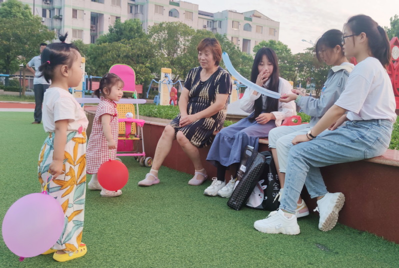 当气球飘荡之时,立即就有孩子奔跑到这些姐姐们的面前小心地观看,还有的孩子拉着妈妈奶奶的手,来到这里看热闹,也想要一只属于自己的气球玩具。而来自学习的小姐姐们,对前来观看的宝宝们都能满足他们的愿望,在奉献爱心的同时,也收获着快乐,并在与宝宝和其家人的交流中,锻炼与社会各界的交际能力和自己的团队合作意识,让学生们过上了一个不一样的社会交往实践课。