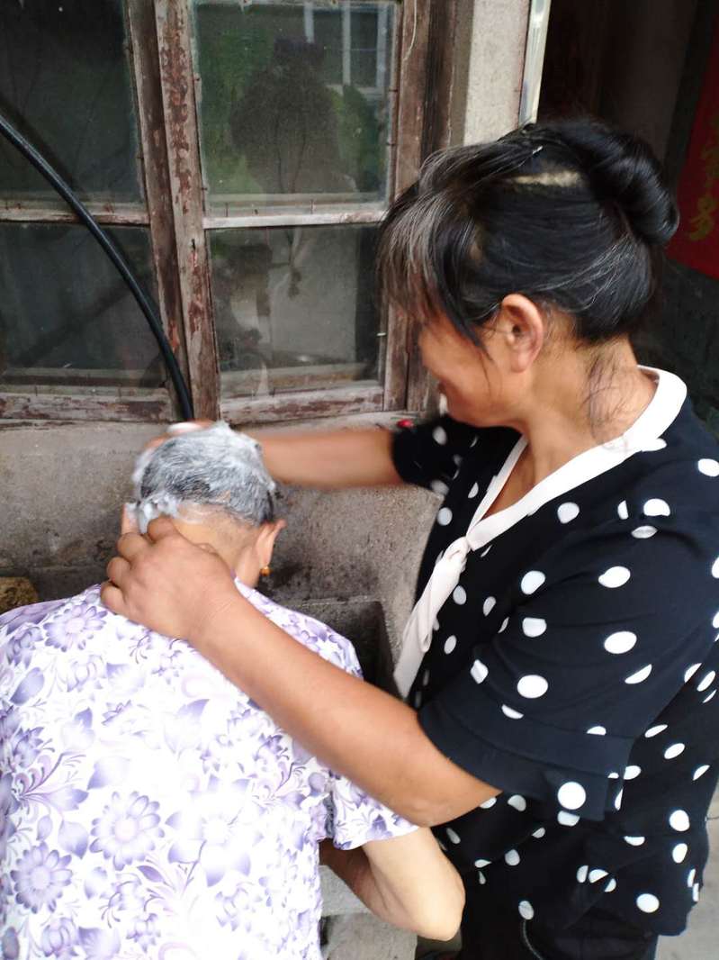 “没有想到我在家里,还有志愿者上门,为我理发、洗头和剪指甲,像姑娘一般地贴心,让我特别感动。”淮海城西居委会振兴小区的居民、80多岁的陈福梅说。