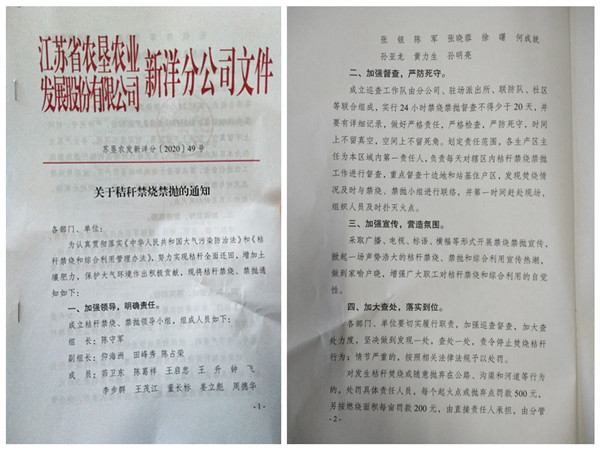 落实包保责任。公司积极与各生产区、大队及农户签订秸秆综合利用承诺书,建立秸秆禁烧“封闭框”,确定封闭“四至”范围,明确包田人员和巡查责任人,做到“定人员、定岗位、定区域、定时间、定职责”,确保包保横向到边、纵向到底,实行“双禁”责任全覆盖。
