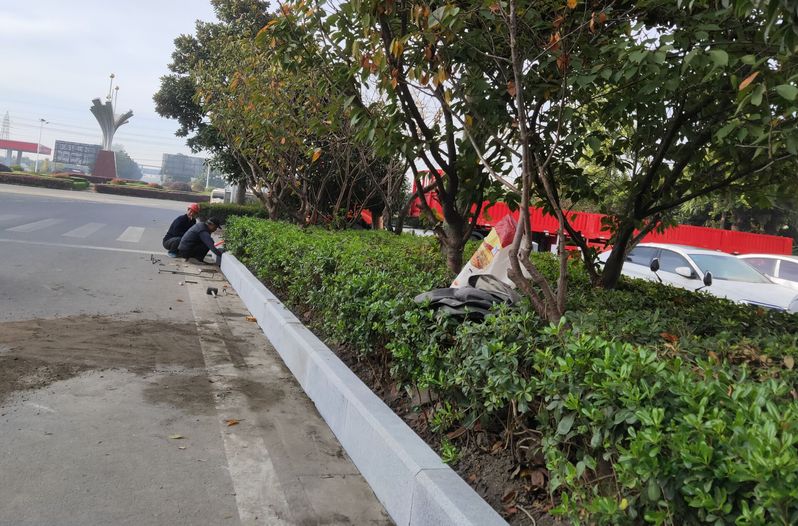 为进一步提升三河小城镇形象,确保道路整洁美观。近日,施工队工人正在贵三河路牙石更换施工。由于旧的路牙石长期裸露在外,风吹日晒,有的路牙石倒在花坛里,有些大块的路牙石已经松动,存在一定的安全隐患。