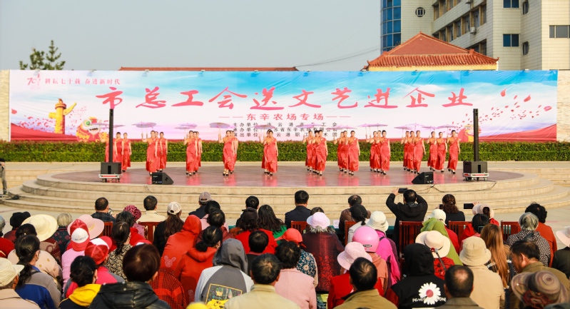 10月19日下午,由连云港市总工会主办、江苏省东辛农场有限公司承办的“市总工会送文艺进企业”活动在东辛文化广场专场演出。市总工会副主席孙月春、宣教部部长胡晓龙、农场公司工会主席王绪国等领导与广大职工群众共同观看了节目。