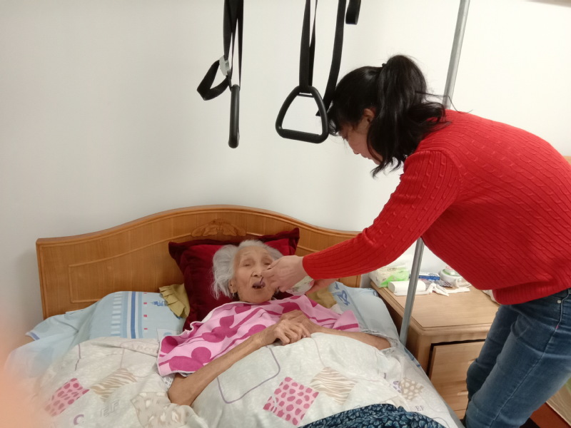 “有了吊环真是方便,我妈除了平时适当进行拉伸运动外,有时她还能拉起床头的吊环撑坐起来自己吃。” 二女儿周粉英说,“你瞧,她现在中午能吃二两饭呢!”