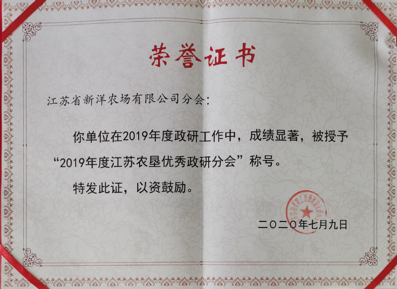 在此基础上,还着力从政工干部、行政干部、骨干职工、新引进的大学生中选拔建设一支高素质的政研队伍,他们经常深入一线调研,倾听职工群众呼声,把握思想脉膊,有针对性地开展研讨活动,积极撰写政研论文。2019年10月,在全国企业文化建设峰会上,农场获得“2019年度全国企业文化建设先进单位”,1篇论文入选全国企业文化建设优秀成果集。今年,在集团公司召开的职工思想政治工作研究会第八次会员大会暨2020年度政研会年会上,新洋荣获“2019年度江苏农垦优秀政研分会”“江苏农垦企业文化阵地建设优秀单位”等称号,“尚善文化”被授予“江苏农垦特色子文化品牌”,戴学林等6人撰写的政工论文获得“2019年度垦区思想政治工作优秀论文”。