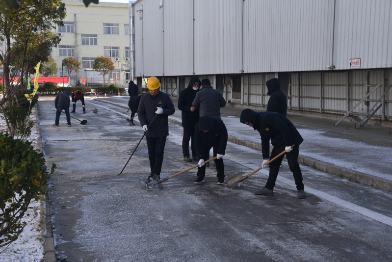 党员和青年员工志愿者们拿着扫帚、铁锹,撒盐融雪,有的扫、有的铲、有的推,对厂区主要道路上的积雪、冰冻进行铲除。志愿者们一边铲着雪,一边提醒过往员工,路滑慢走,注意安全。经过3个多小时的紧张劳动,公司厂区主要道路上的积雪和冻冰被打扫得干干净净,全面消除了积雪冰冻带来的易滑安全隐患。