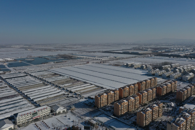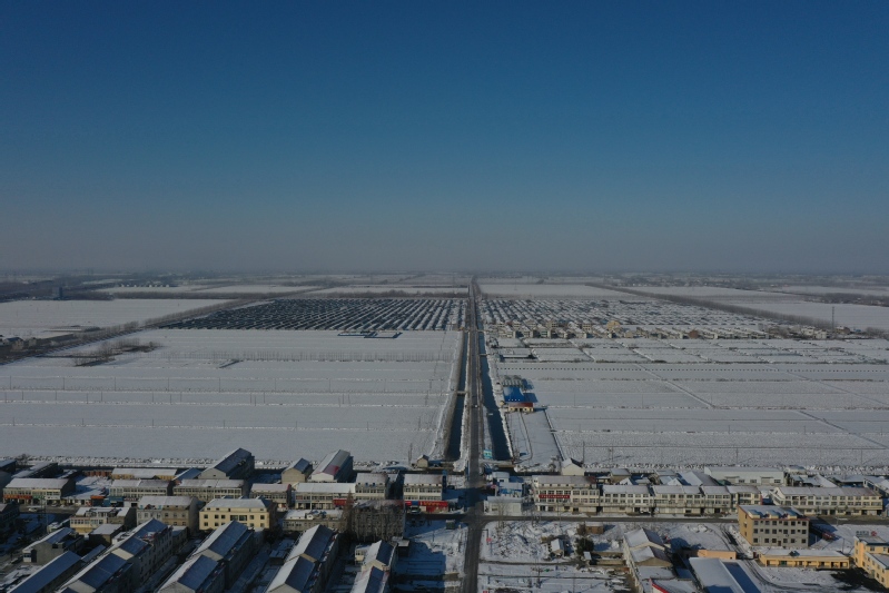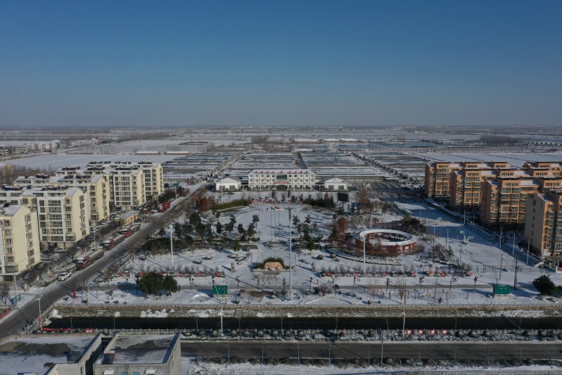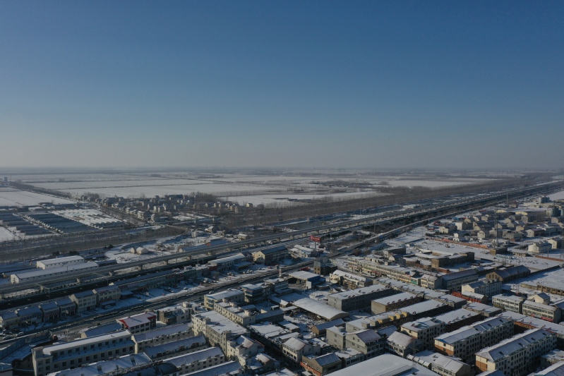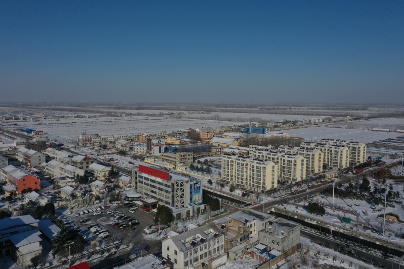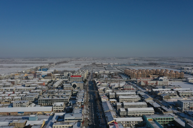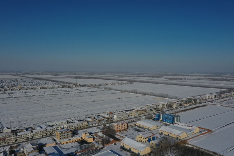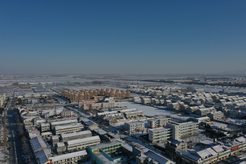 雪后初晴,利用无人机航拍记录这一美丽的场景。只见岗埠农场小城镇大雪过后一片白色的景象,到处是白雪皑皑,与蓝天形成了强烈的对比,构成了一幅幅生动的蓝天白雪图。