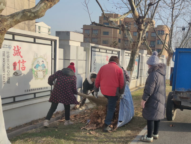 随着传统春节节日的来临和新冠肺炎疫情的严峻形势,淮海农场社区绿化环卫所组织10多名员工,沿着农场主要道路沿线开展了大规模的环境卫生大扫除活动,义务清扫农场主要干道上的因降温而掉落的树叶,进出道路沟坎及各排水沟道的卫生,通过清扫清除死角垃圾,保证排水畅通和环境清洁。