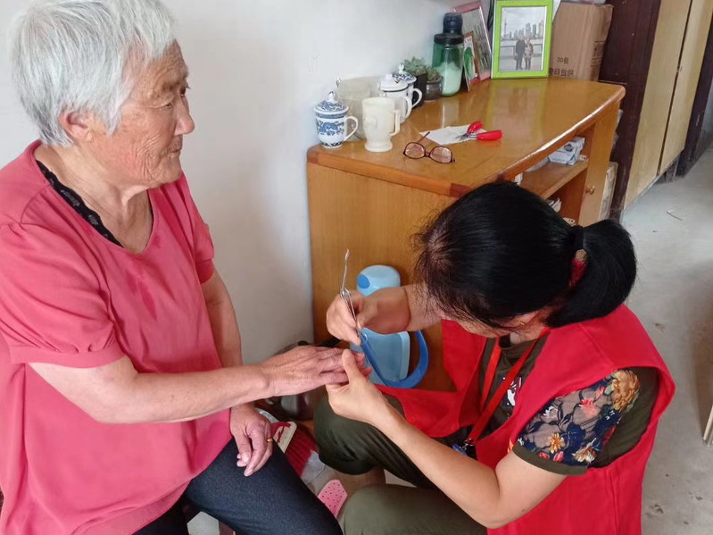 据了解,年龄达到80岁的老人,在淮海是极其庞大的一个群体,许多老人家庭、甚至一些孤寡老人因为子女不在身边而承受着异常的孤独,有时还要备受病痛的折磨。而淮海居家养老照护员的出现和居家养老社会服务的开展,无疑为他们开辟了一条亲情式的服务通道,能让他们在养老服务和社会各界的亲情关爱中,享受颐养天年之乐和生活的美好。图为金实银康居家养老服务人员在上门服务时的镜头。