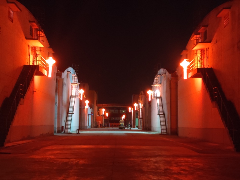 今年春节期间,原本幽暗的淮海公司粮食仓储库,被一盏盏红彤彤的中国梦式字样的中国结所照亮,为淮海公司单调的仓储库增添了亮丽的色彩,这也是淮海公司借助淮海农场沿路灯柱灯饰的亮化工程,将公司内粮食仓储库内同步进行亮化美化的一个风景,也给公司带来了暖暖的气氛。据悉,近20盏中国结分布在各个粮食仓储库和加工车间的墙壁上,既可以当照明用,也增添了喜庆的氛围。图为夜色下温情的淮海仓储库灯饰。