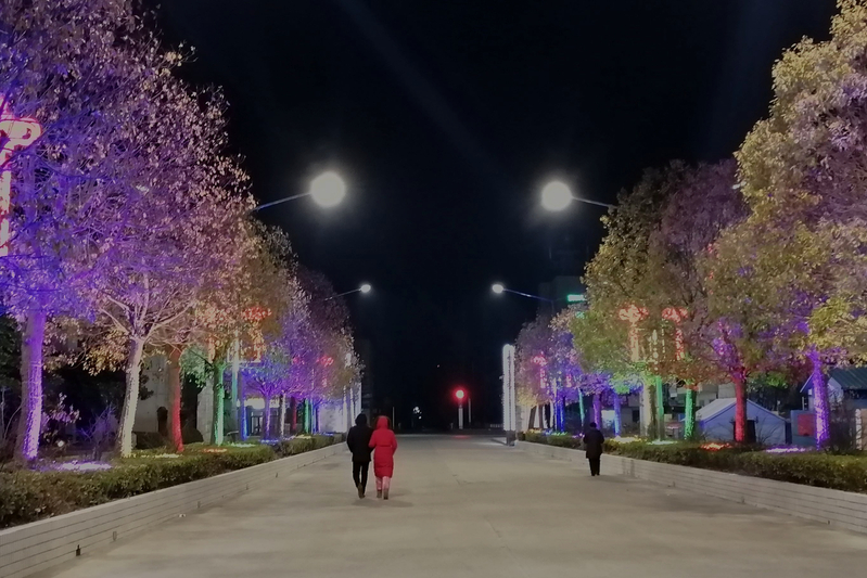 随着小城镇建设不断推进,新洋农场公司十分注重环境的美化和亮化,着力打造一个良好的人居环境,近几年对路灯和装饰灯进行了大规模的改造,逐步更换成节能且光效更亮的新型灯具,并进行科学布局。入夜,场部小镇灯光璀璨,徜徉在五彩缤纷如梦如幻的径九路上,温馨、浪漫。
