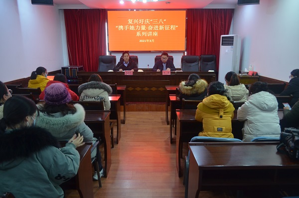 为庆祝第111个国家“三八”妇女节,根据集团公司工会部署安排,3月8日,复兴圩农场有限公司工会举办了“携手她力量.奋进新征程”讲座活动,农场公司全体女性管理人员、女性一线职工参加了活动,农场公司党委委员、副总经理、工会主席苏学军、党委委员朱涛出席了活动。