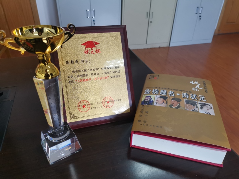 在由诗界名家杂志社和“状元杯”中华诗词大赛组委会联合举办的第五届“状元杯”中华诗词大赛中,新洋农场退休职工陈颖民荣获“金榜题名·诗状元 一等奖”。