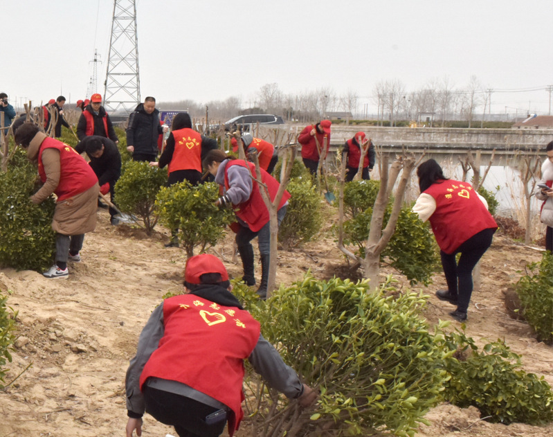 3月9日上午,农场公司工会还组织了10名妇女与农场公司的广大志愿者们一起,去农场苗木基地参加义务植树活动,以志愿精神为农场大地增添一片绿色。
