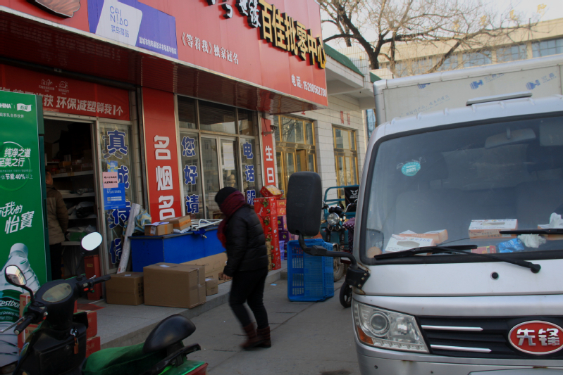 分布在新洋城镇的三个菜鸟驿站每天人来人往领取快递包裹,服务员忙得不亦乐乎。