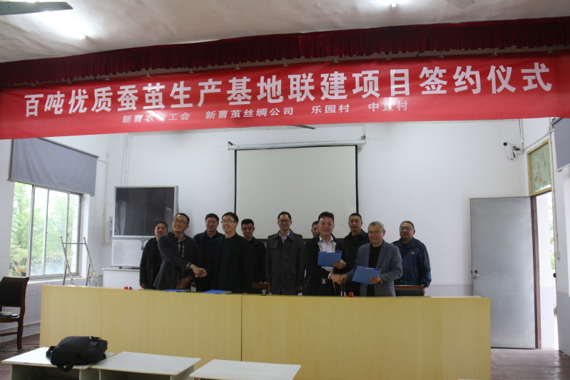 为贯彻落实省总工会关于开展“万企联万村 共走振兴路”活动要求,4月22日,由新曹农场有限公司工会牵头,联建企业新曹茧丝绸公司与联建村东台市唐洋镇乐园村、中苴村举办2000亩桑园百吨优质蚕茧生产基地联建项目签约仪式。