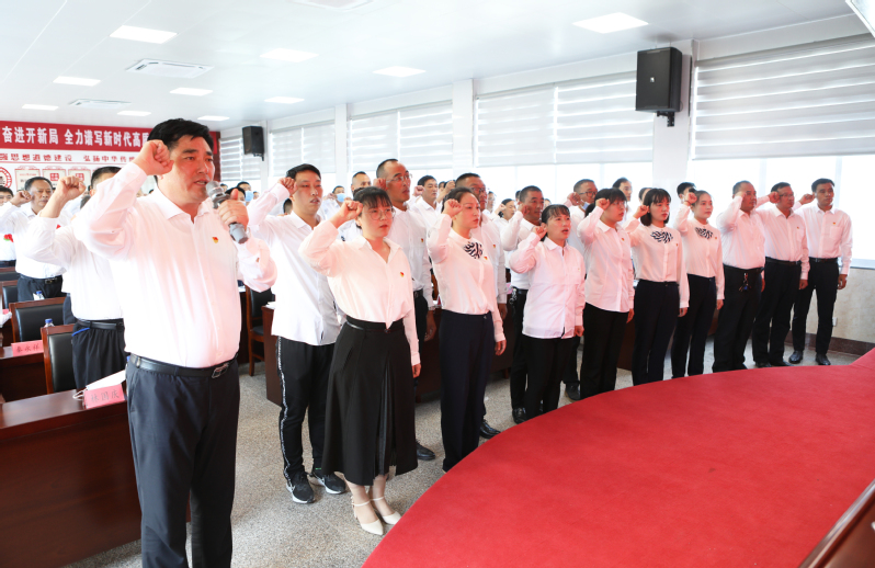 “我志愿加入中国共产党、拥护党的纲领,遵守党的章程……”在党委书记徐中兵的带领下,全体新老党员高举右拳,面向党旗庄严宣誓,重温入党时对党和人民作出的庄严承诺。