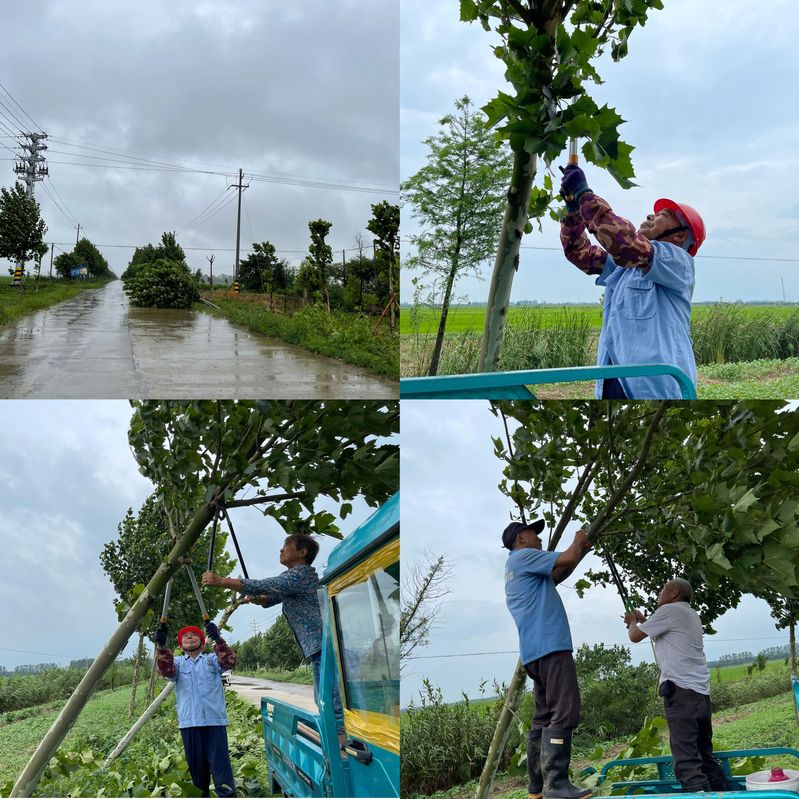 三河农场有限公司林业发展中心迅速组织人力,从7月28日上午起,林业工人利用阵雨间隙,按照隐患危险高低程度,首先加紧对倒伏在地,严重阻碍交通的树木进行修剪,扶正,培土,随后对倾斜树木存在安全隐患树木扶正,并用进行木桩三角支撑加固。林业工人分工合作、配合默契、齐心协力,在修剪树枝的同时及时清空道路上的树枝,确保道路畅通无阻。