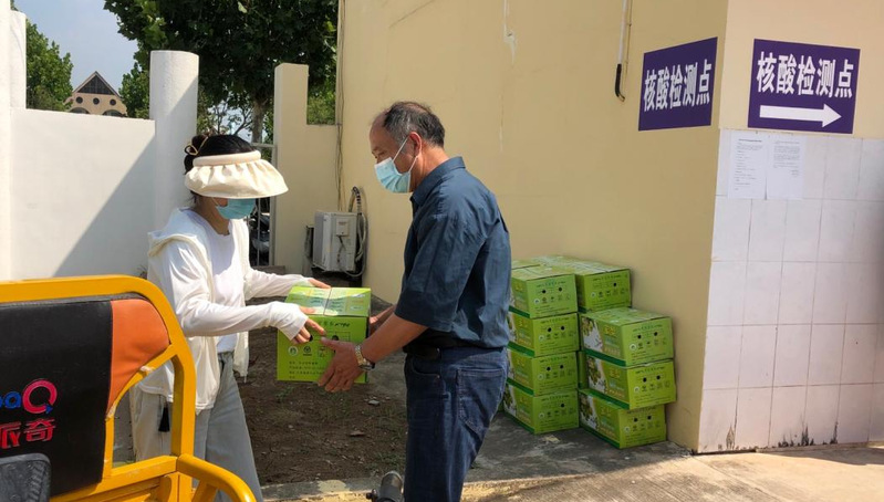 近日,东辛农场公司工会紧紧围绕集团公司工会下发了《关于在防疫防汛中充分发挥工会组织作用的通知》精神,专门组织开展为防疫一线人员送清凉活动,为奋战在防疫一线的志愿者、卡口值班人员和医院工作人员送上黄金瓜、蜜梨、蚊不叮等慰问品,把关爱送到防疫工作者的心坎上,让他们切实感受到农场党委的关怀及工会“娘家人”的温暖。(图为工会工作人员为防疫一线人员送上蜜梨)