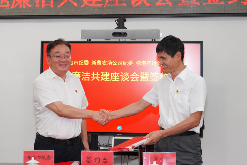 座谈会期间,陈国强、胡广斌分别介绍了农场情况,就近年来农场在学习教育、日常监督、巡察整改回头看、队伍建设、廉洁共建等纪检监察工作开展情况作了交流。郑小健宣读了《企地廉洁共建行动方案》;弶港、新曹农场公司纪委和东台市纪委分别签订了《企地廉洁共建协议》。双方宣读了聘请党风廉政建设指导员、党风政风监督员和特邀党风政风监督员的决定,并交换了聘书。
