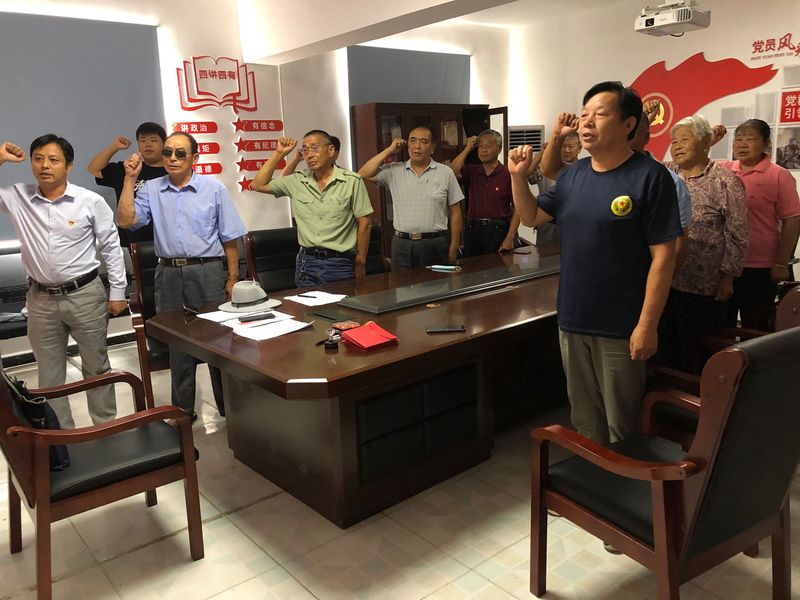 活动中,党员们站在鲜红的党旗下,举起右手、握紧拳头,重温入党誓词。支部书记向党员们赠送了政治生日贺卡并激励支部退休党员“离岗不离党,退休不褪色”,继续保持老骥伏枥、老当益壮的健康心态和进取精神,一如既往地关心、支持、参与三河事业发展。随后,老党员们用诚挚的感情、朴实的语言分享了自己的入党初心和对农场发展的建议。