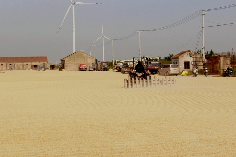新洋分公司场头全面实现了机械化,放场、翻场、收场、堆场、扬场、进仓等一系列场头工作均由机械来操作完成,省工、省时、速度快,保证了上场的稻谷快速晒干,及时进仓,腾出晒场迎接下一场稻谷的晾晒。