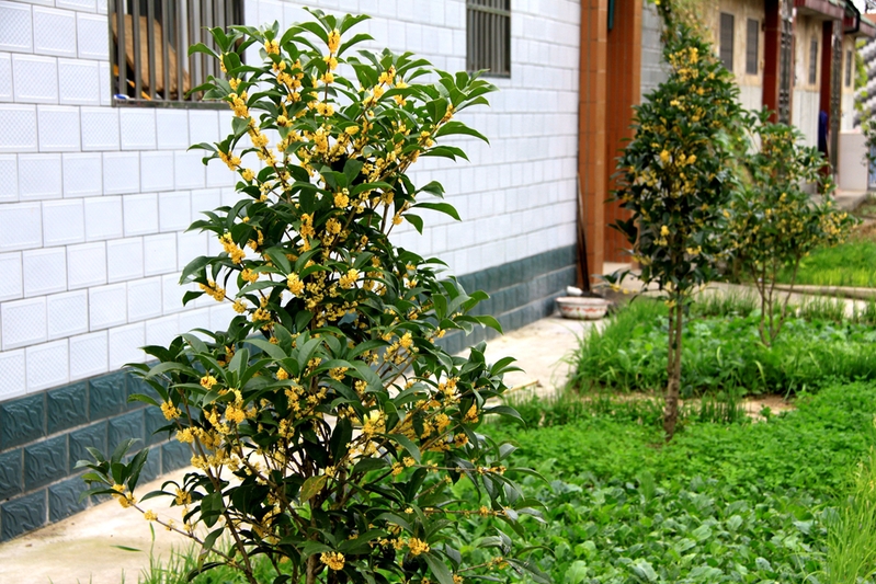桂花是我国古代传统的十大名花之一,素以芳香而著名,因其树势丰满、紧凑、姿态秀丽、四季翠绿、色泽四时有变,根系发达、抗寒抗逆能强,可作盆花、行道树、大小香花灌木球、盆景桩头等种苗,是集绿化、香化、美化、彩化于一身,品味、价值极高的珍贵花卉树木之一。过去,新洋只有几株桂花树,是居民自己移栽的,散落在各处,形不成气候。前几年,农场引进数十株桂花树,栽种在新农三村沿纬二路的居民住宅边的花池中,成为一道新景观,既绿化、彩化了环境,也香化、美化了生活。