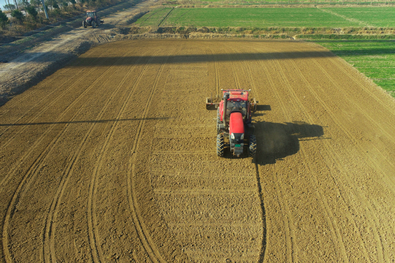 淮海农场自2016年通过在机插秧秧畦上试验和示范新型农机平整土地以来,良好的平整度和快速的作业效率,很快得到了众多农机手的响应和农场农机服务部门的大力推崇,目前淮海农场有限公司上千块机插秧秧畦普遍推广使用北斗导航激光平整系统,同时也让过去因为平整度差而一度使用的耕牛也退出了传统农耕的行列。这种“藏粮于机”的战略,让粮食增产的质量更稳健,发挥出了国有农场农业国家队和新型农业机械方面的示范引领和带头作用,也为粮食生产的可持续发展和端牢中国饭碗奠定了坚实的农机质量基础。图为淮海农场现代农业机械对机插稻秧畦采取旱平整时的镜头。