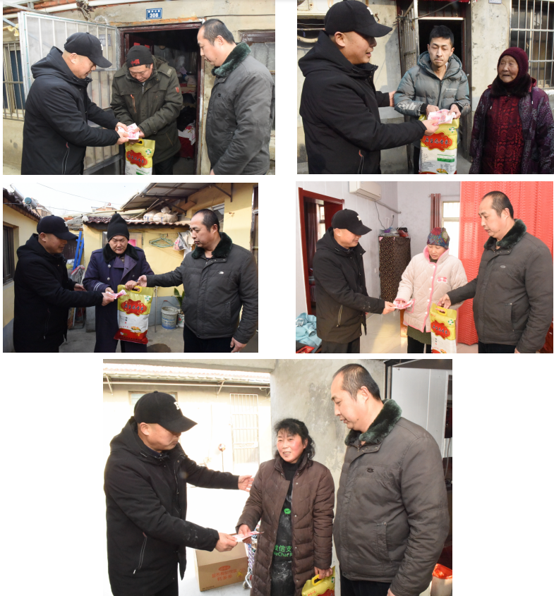 “刘国银,你好!我给你带来了1袋米和300元钱,这是我代表陆同联来慰问你们,务必请你收下!”1月16日上午8时许,淮海农场社区城西居委会主任臧成龙和工作人员陈旺携带5袋大米和1500元现金,先后来到城西振兴小区困难居民朱锁英、严建明、姜礼菊、沈成龙和群乐小区刘国银的家中,应邀对这五户贫困户开展节前献爱心送温暖活动,为他们送上节日的祝福和美好的祝愿。